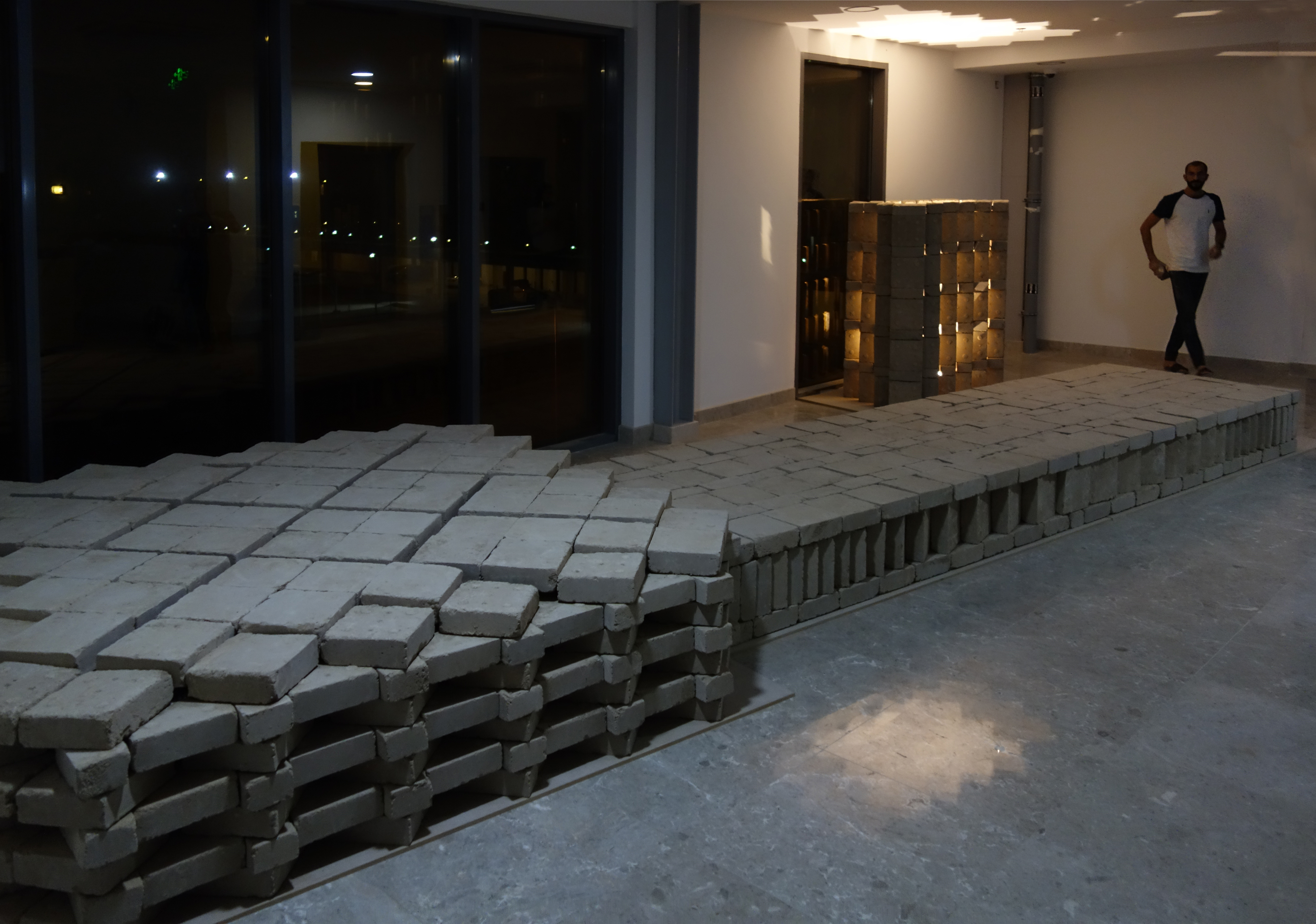 Given a single masonry module, students developed an exhibition surface for the Architecture department. A variety of bonding patterns were deployed and a series of free-standing objects activated the otherwise unused space.